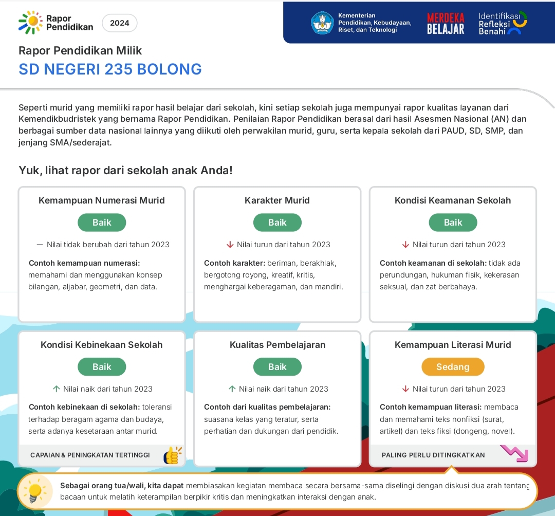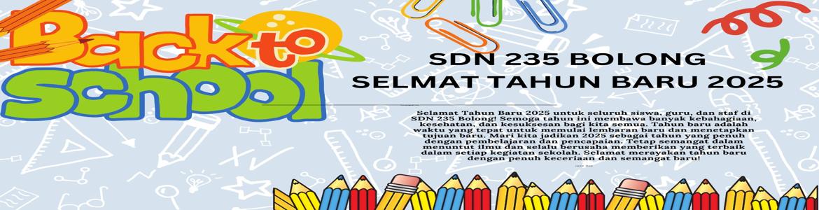 Assalamu'alaikum wr.wb.Puji syukur kepada Alloh SWT, Tuhan Yang Maha Esa yang telah memberikan rahmat dan anugerahNya sehingga website SDN 235 Bolong ini dapat terbit. saya sebagai kepala sekolah berharap Salah satu tuju...